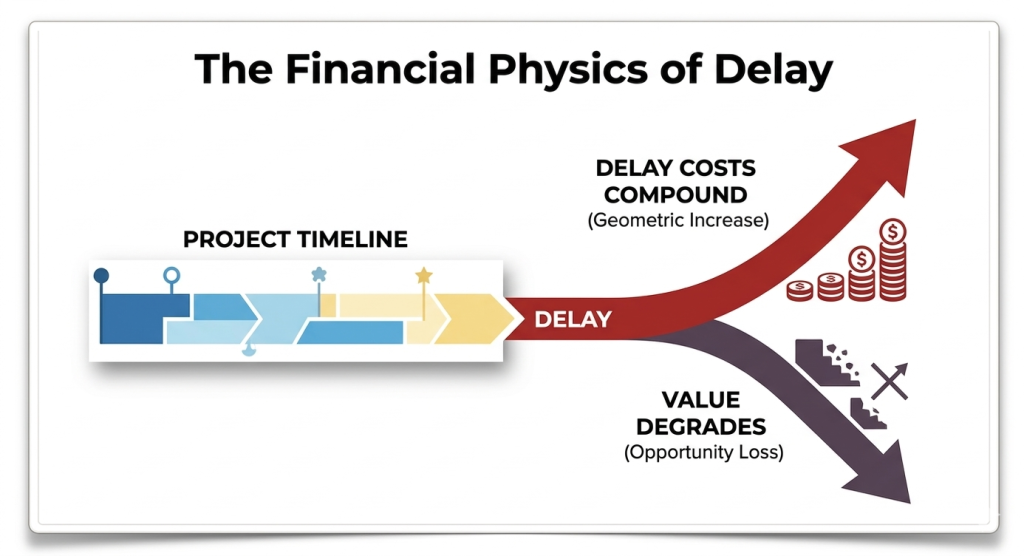 Delay destroys value at exactly the rate the project was supposed to create it.