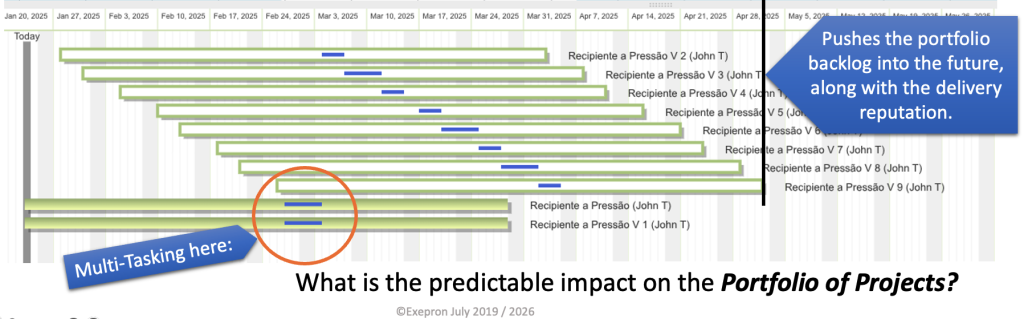 Projects rarely operate in isolation. They share engineers, equipment, specialists, and decision-makers. These resources take turns and act as potential true constraints of the organization. When one project occupies them longer than planned, the next project is disrupted, slowed, and occasionally halted.